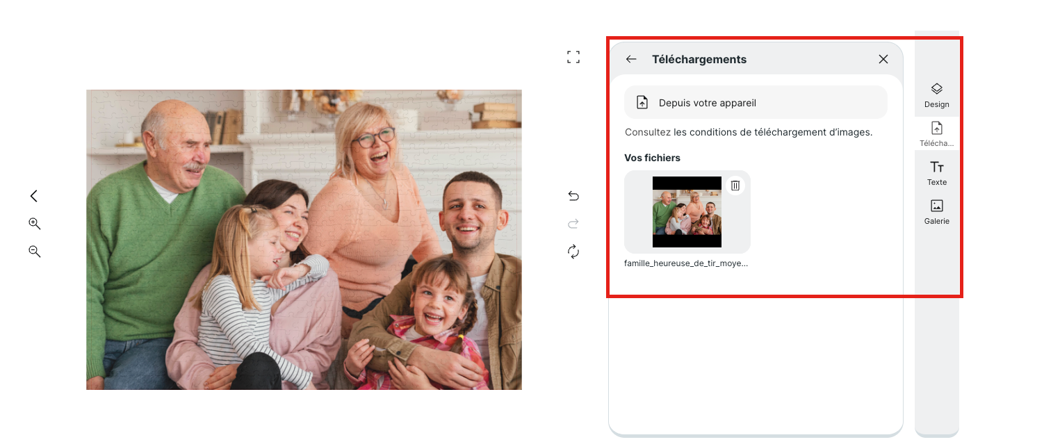 Sur notre site La Puzzlerie, la personnalisation est simple, rapide et intuitive. Pour créer votre puzzle, il suffit de suivre quelques étapes :